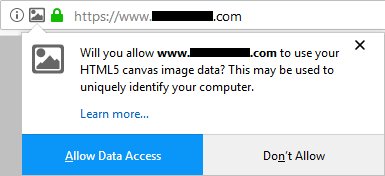 This website does not track visitors through canvas fingerprinting, a claim that can be verified by visiting the site using Tor Browser, which displays the warning shown below when a website attempts to extract any HTML5 canvas image data, even for legitimate uses of the canvas element such as verifying the emoji rendering capabilities of the browser.